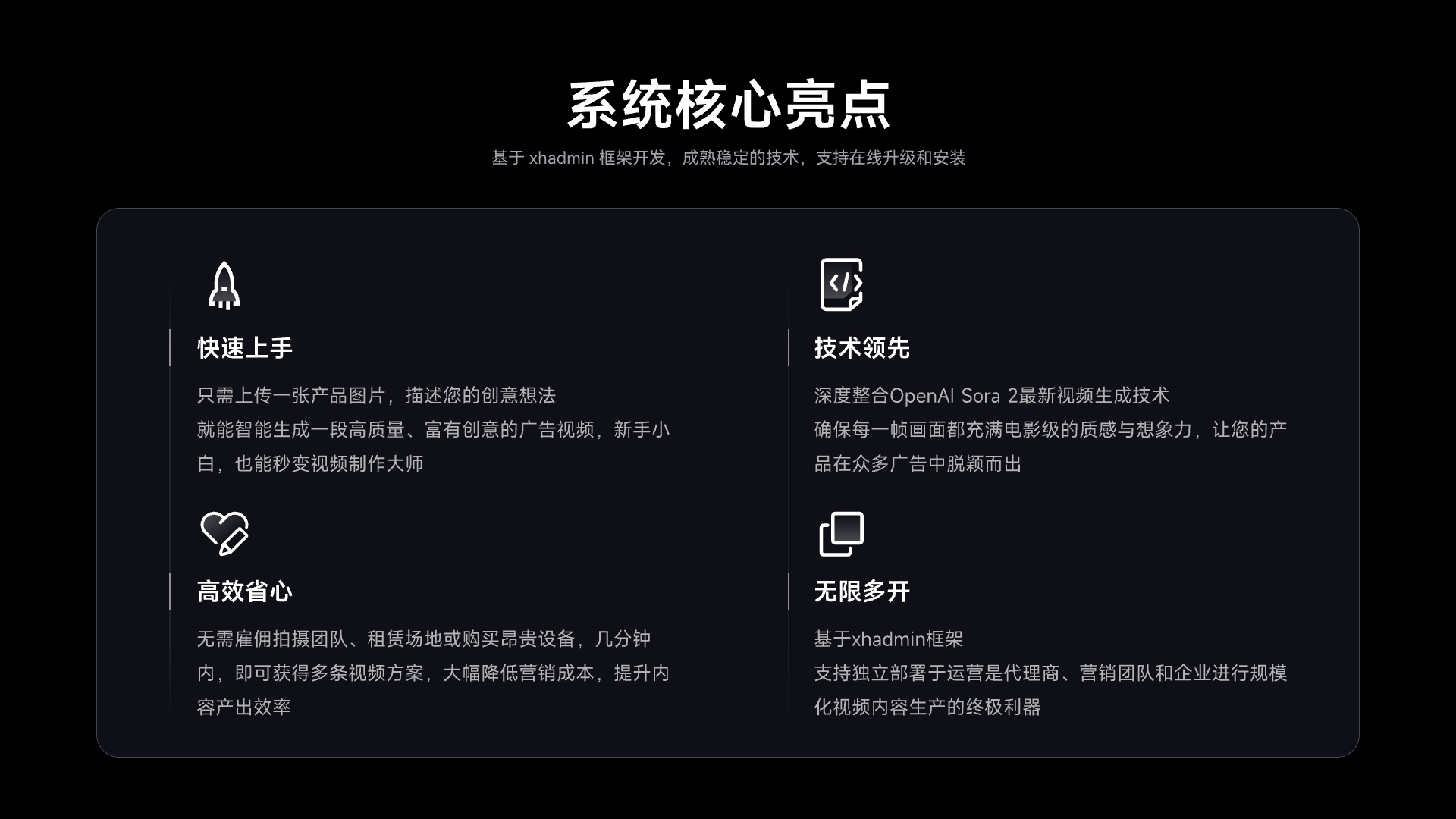 Sora2 AI短视频生成小程序,旨在让不会写文案、不会剪辑、没有时间的人,也能持续产出专业级短视频。 如果你想用最低的成本,快速布局短视频渠道、获取更多流量与订单,Sora2 将是你值得尝试的 AI 短视频生产力工具。