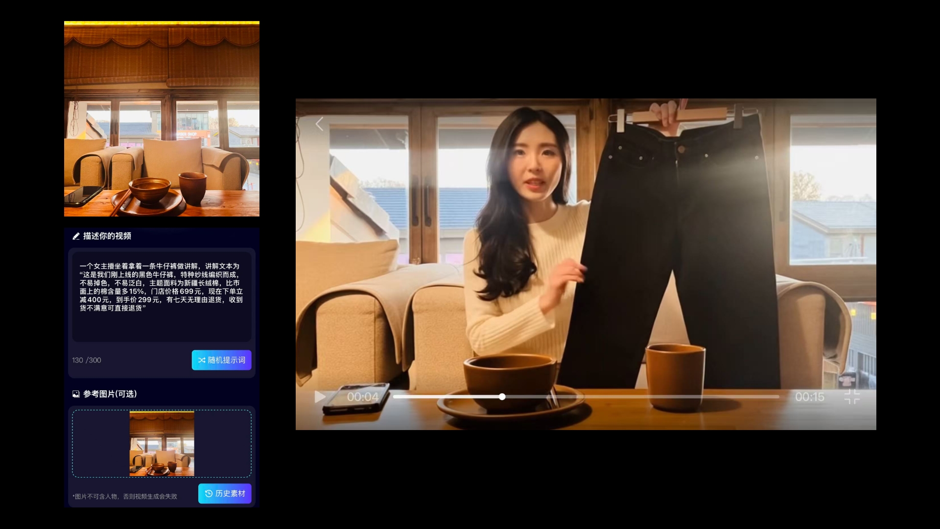 - •智能画面匹配:根据脚本自动匹配素材(图片/视频),支持本地上传与素材库调用。